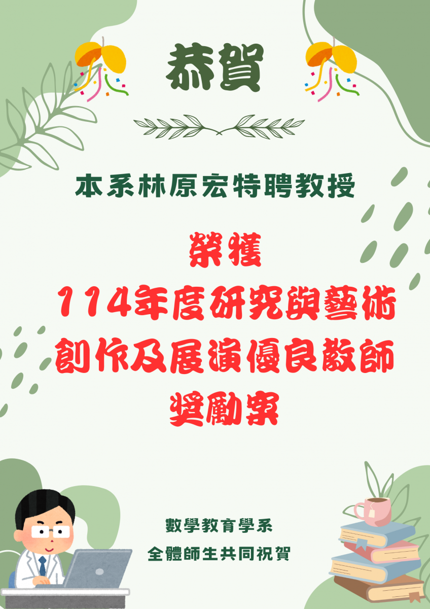 恭賀 本系林原宏特聘教授榮獲 114年度研究與藝術創作及展演優良教師獎勵案