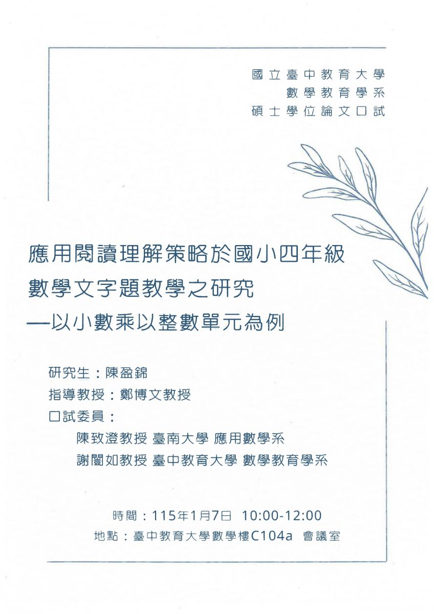 口試日期時間:115年1月7日(三) 上午 10:00-12:00