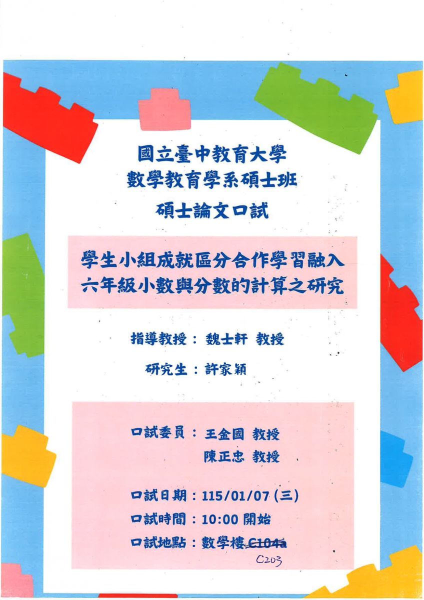 口試日期時間:115年1月7日(三) 上午 10:00-12:00