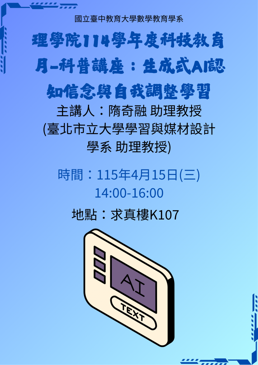 演講題目:生成式AI認知信念與自我調整學習